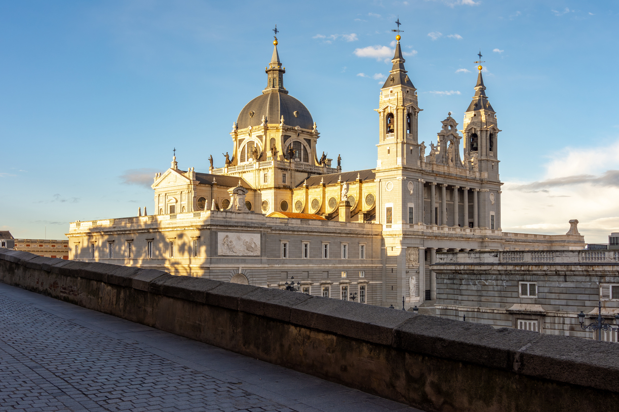 Der Palast entstand im 18. Jahrhundert an Stelle der alten Alcázar-Burg; die heutigen Fassaden, Höfe und Treppenläufe erzählen von einem Spanien, das seine Hauptstadt bewusst monumental inszenierte. Anders als der Name vermuten lässt, ist der Palacio heute primär Zeremonial- und Museumsort; die königliche Familie lebt außerhalb. Gegenüber wuchs die Almudena-Kathedrale über lange Bauphasen: klassizistische Front zum Palast, neogotische Halle, farbige Kapellen und eine weit verzweigte Krypta – am Ende ein stilistischer Gleichklang zur Umgebung, ohne ihre eigene Zeit zu verleugnen. Zusammen bilden beide Bauten einen Hof-Raum, der Geschichte und Gegenwart elegant verknüpft.